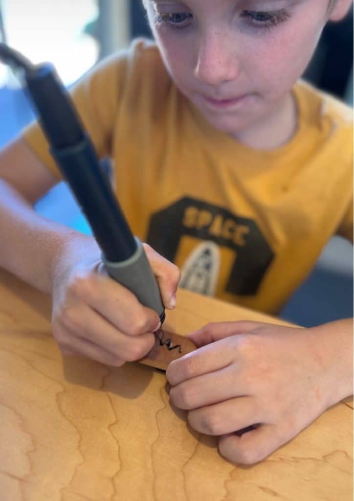 Kids enjoyed making wooden keychains and magnets at The Wilder Woodshop